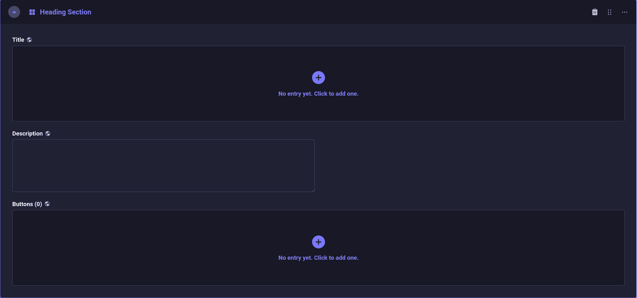 Die einfachste Form eines Inhaltselements ist „Text with Image“. Das wird in 90% der Fälle verwendet werden, weil es sehr gut mit dem dreispaltigen Layout auf dem Desktop funktioniert und Basisfunktionalität für die Darstellung von Texten liefert. Es können ein Icon, Titel, Bilder, Buttons und Zugriffsberechtigungen festgelegt werden.