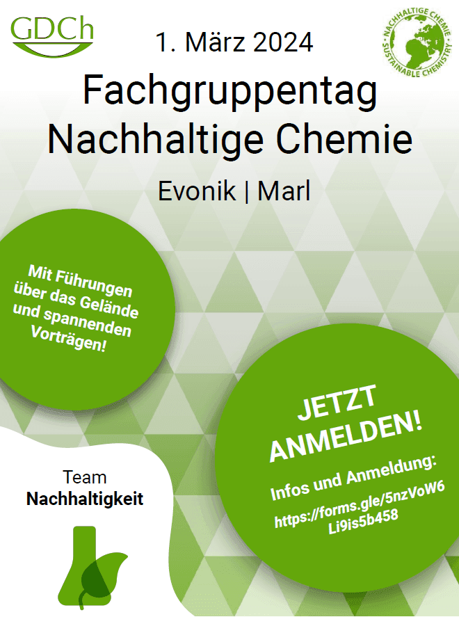 Sessions der GDCh-Fachgruppe Nachhaltige Chemie (gemeinsam mit der GDCh-Fachgruppe Liebig-Vereinigung für Organische Chemie):