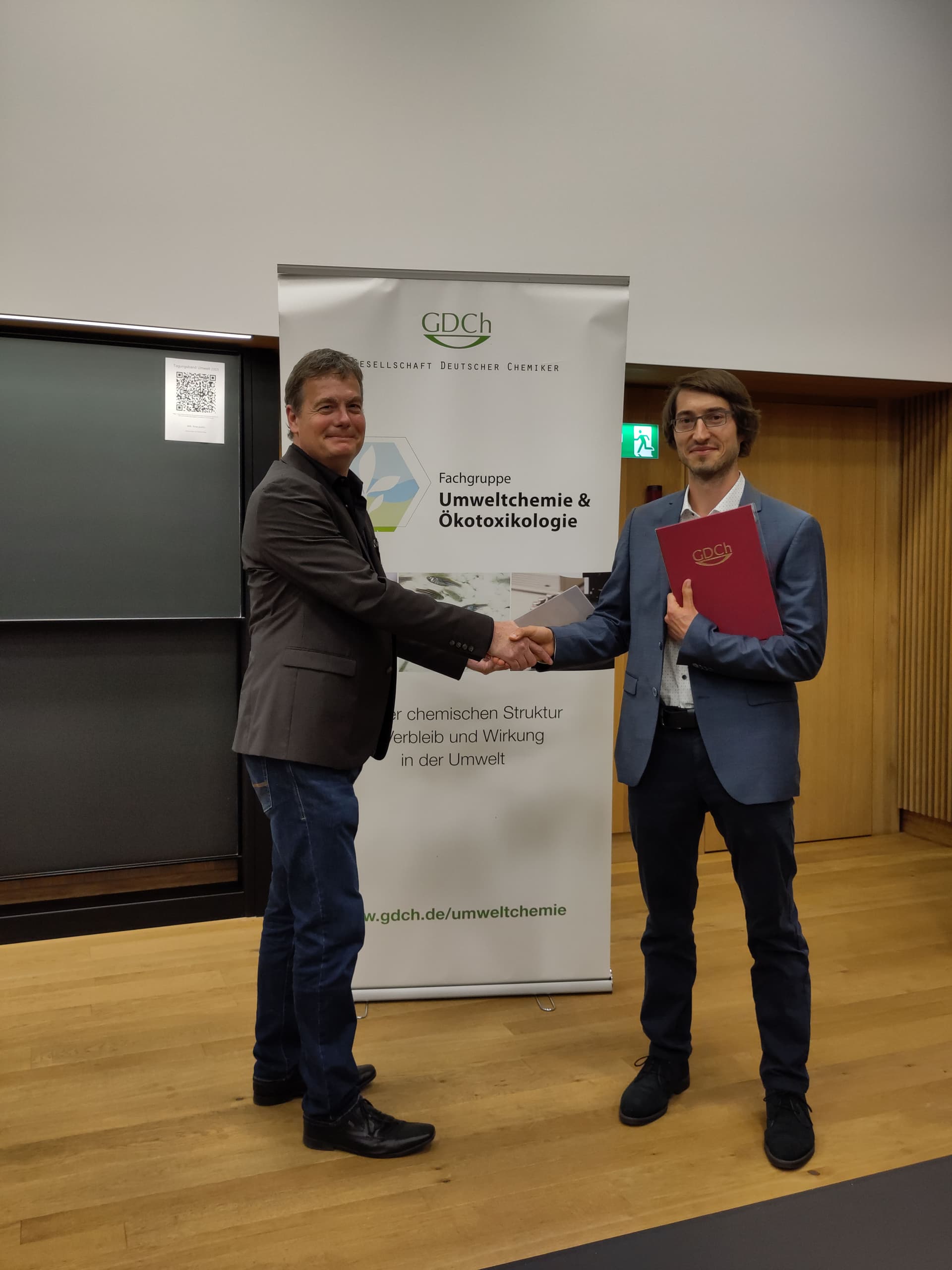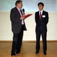 Auf der Gemeinsamen Jahrestagung der SETAC-GLB und der GDCh-Fachgruppe Umweltchemie & Ökotoxikologie am Umweltforschungszentrum in Leipzig vom 10.-13. September 2012 übergab der FG-Vorsitzende Prof. Andreas Schäffer den Preis an den aus Japan stammenden Wissenschaftler Manabu Shiraiwa für seine Publikation "The role of long-lived reactive oxygen intermediates in the reaction of ozone with aerosol particles" (Nature Chem. 2011, 3, 291–295)
