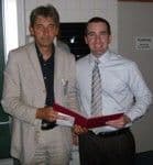 Am Ende fiel das Votum der Jury eindeutig auf Michael C. Dodd und seine Publikation "Oxidation of Antibacterial Compounds by Ozone and Hydroxyl Radical: Elimination of Biological Activity during Aqueous Ozonation Processes" (Environ. Sci. Technol. 2009, 43, 2498-504). Wie Prof. Eisenträger in seiner Laudatio unterstrich, ragte diese Arbeit zur Oxidation antibakterieller Komponenten durch Ozon- und Hydroxylradikale aus einer Vielzahl großartiger Arbeiten eindeutig heraus.
